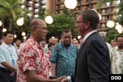 9月29日星期五,美国国防部长卡特在夏威夷主办美国-东盟防长会议期间会见了菲律宾国防部长洛伦扎纳。