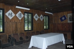 宋美姣介绍说:“文革期间这个地方我们是作为学校和医院使用的,所以保存了下来。这些地方当年是飞虎队的军营区,没有那么多的办公桌椅,这些桌椅是举行受降仪式时到怀化的安江纺纱厂借来的。当时负责筹备受降典礼的是新六军的官兵,这些工作人员特别有心,他们认为这些桌椅是见证过胜利的桌椅,所以就在上面刻字编号;受降之后又归还给了纺纱厂,文革期间继续作为办公桌椅使用。后来到了八十年代纪念馆建馆、开馆之后,纺纱厂的人就根据那些刻字和编号,就把它们全部捐赠给纪念馆了。”